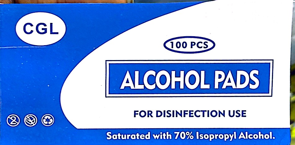 CGL Alcohol Prep Pads Individually Wrapped with 70% Isopropyl Alcohol, Perfect for First Aid, Medical Kits. Contains sterile 100 pcs